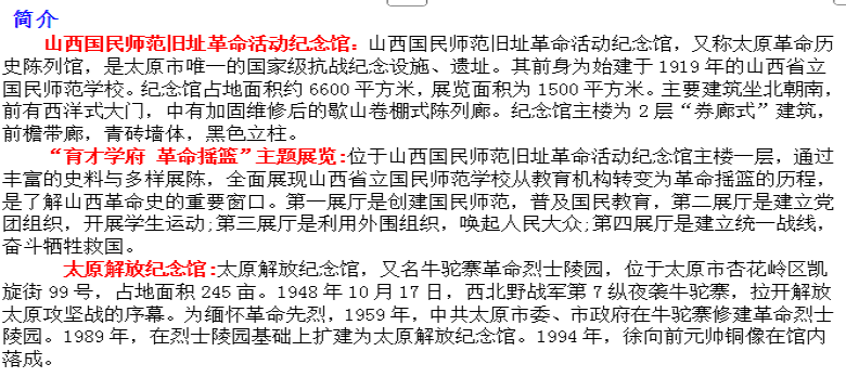 山西国民师范旧址革命活动纪念馆、太原解放纪念馆一日