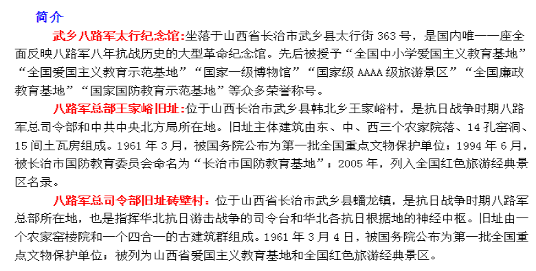 武乡八路军太行纪念馆、八路军总部王家峪旧址、八路军总司令部旧址砖壁村一日游