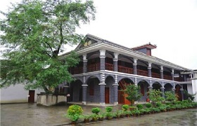 遵义会议会址:遵义会议会址在遵义老城子尹路(原名琵琶桥)东侧,原为黔军25军第二师师长柏辉章的私人官邸,修建于30年代初。整个建筑分主楼、跨院两个部分。主楼为中西合璧,临街有八间铺面房,当年为房主经营酱醋及颜料纸张。铺面居中有一小牌楼,檐下悬挂着毛泽东1964年11月题写的"遵义会议会址"六个字的黑漆金匾(此为毛泽东为全 国革命纪念地唯 一的题字)。街面房连接主楼与跨院之间有一座青砖牌坊。牌坊上方用碎蓝瓷镶嵌着"慰庐"二字。牌坊的另一面有"慎笃"二字。遵义会议会址主楼坐北朝南,一楼一底,为曲尺形,砖木结构,歇山式屋顶,上盖小青瓦。楼房有抱厦一圈,楼顶有一老虎窗。楼层有走廊上,可以凭眺四围苍翠挺拔的群山,指点昔日红军二占遵义时与敌军鏖战地红花岗,插旗山、玉屏山、凤凰山诸峰。会址主楼上下的门窗,漆板粟色,所有窗牖均镶嵌彩色玻璃。紧挨主楼的跨院纯为木结构四合院,仍漆板粟色。1935年1月上旬,中国工农红军第 一方面军长征到达遵义后,中央革命军事委员会总司令部与一局(负责作点)即驻在这幢楼房里。从1954年到现在,会址主楼的房间逐步复原了遵义会议会议室、军委总参谋部办公室、军委副主席-的办公室兼住室、红军总司令-与军委直属队指导员康克清的办公室兼住室以及红军总参谋长-的办公室兼住室、军委总部参谋人员和工作人员的住室等。