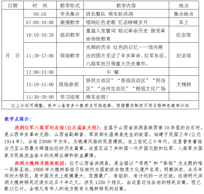 洪洞红军八路军纪念馆、历史文化遗产—大槐树一日