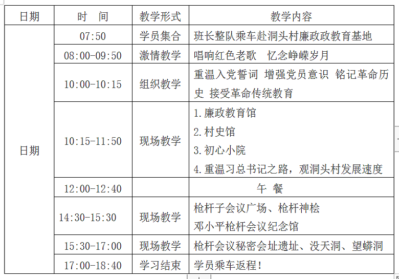 晋城洞头村、枪杆村一日学习安排